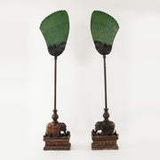 Pair 19th Century Chinese Carved Zitan Elephants Bronze Cloisonné Royal Palm Fans