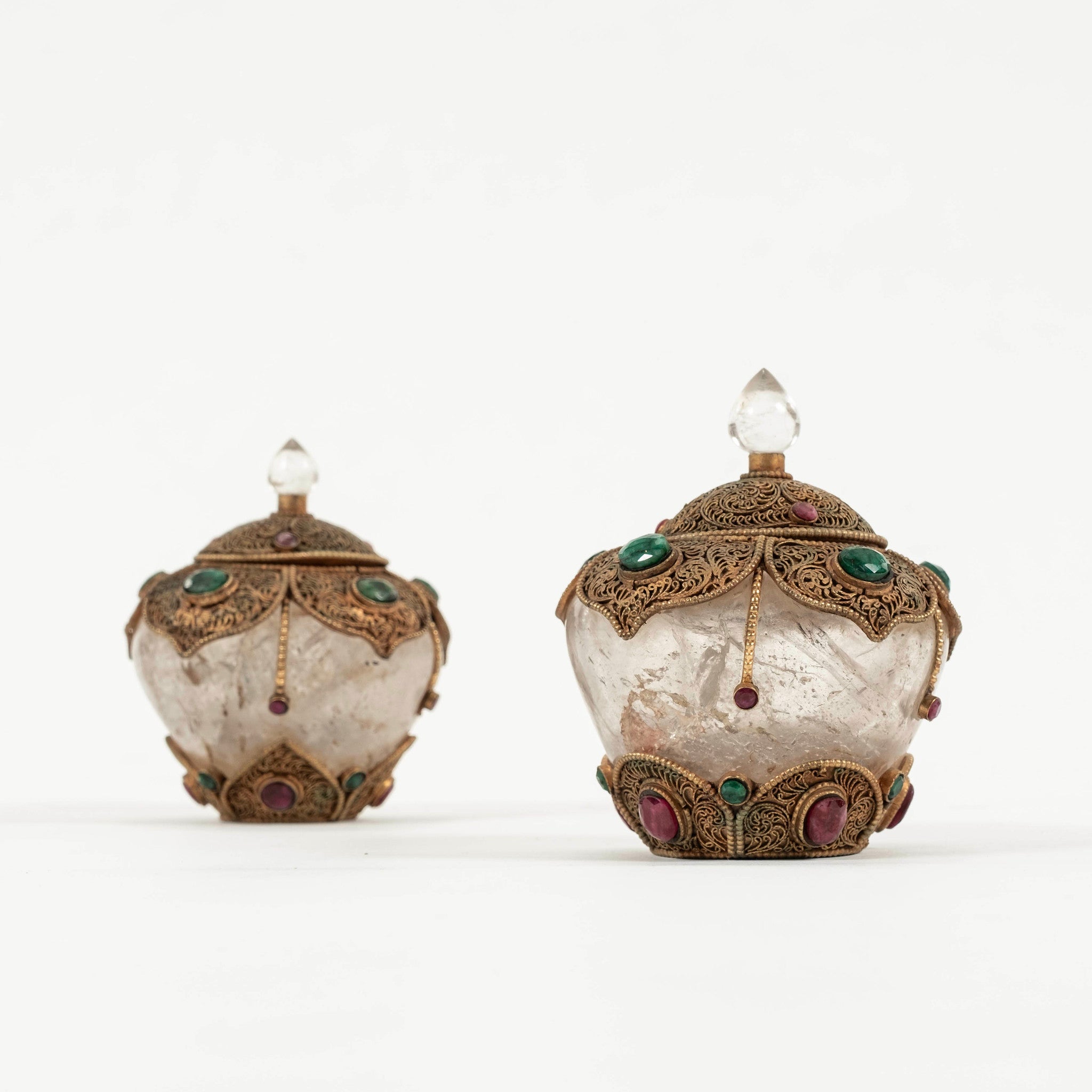 Himalayan Jewel-Encrusted Gilt FIligree Rock Crystal Covered Bowls