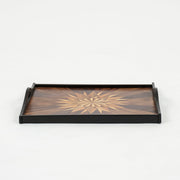 Mid-Century Mixed Wood Tray with Geometric Pattern