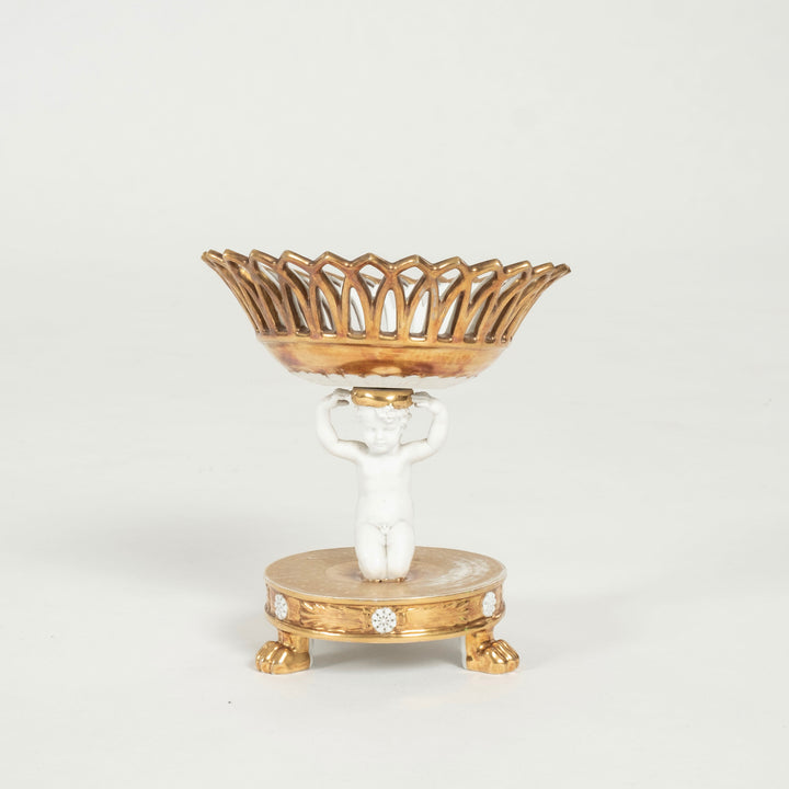 19th Century Old Paris Porcelain Reticulated Compote with Cherub
