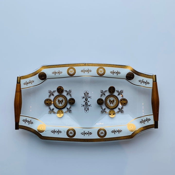 Mid-century Georges Briard Embassy pattern tray with teak handles.