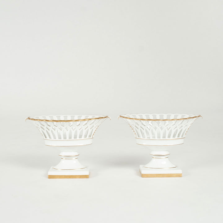 Pair 19th Century Old Paris Porcelain Reticulated Compotes