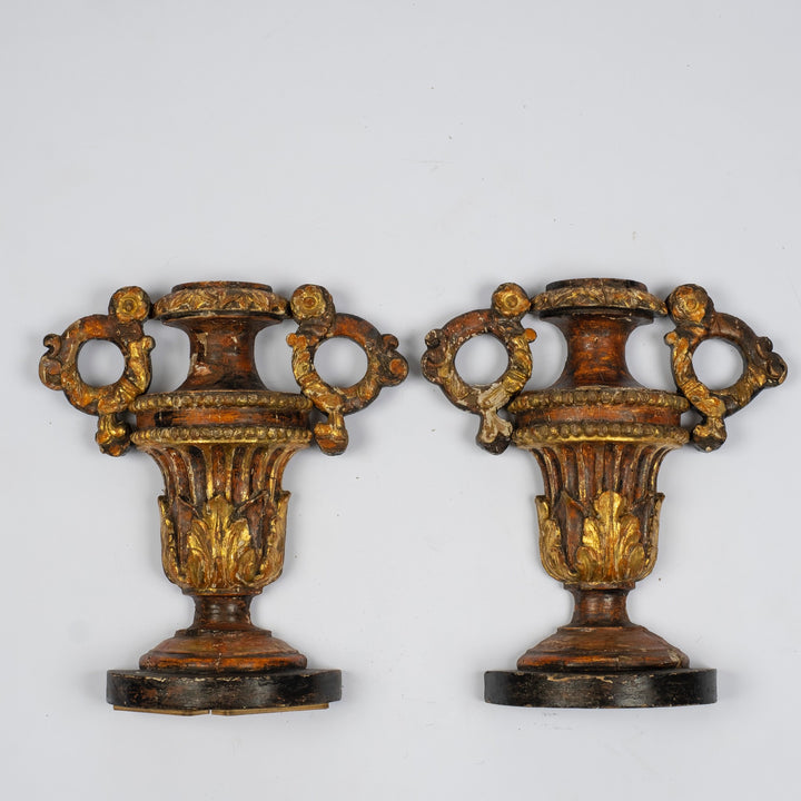 Pair of 18th Century polychrome gilt wood urn appliqués.