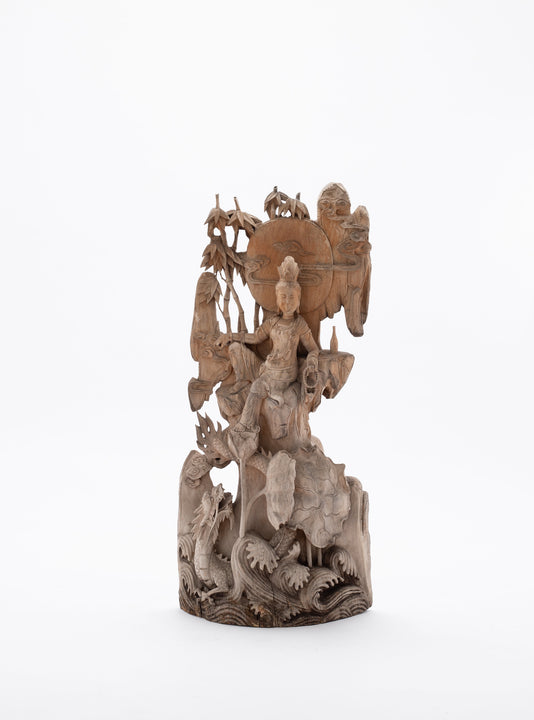 20th Century Seated Quan Yin With Dragon And Bamboo