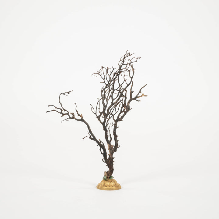 19th Century French bronze doré fragment, tourmaline, black coral sea fan.