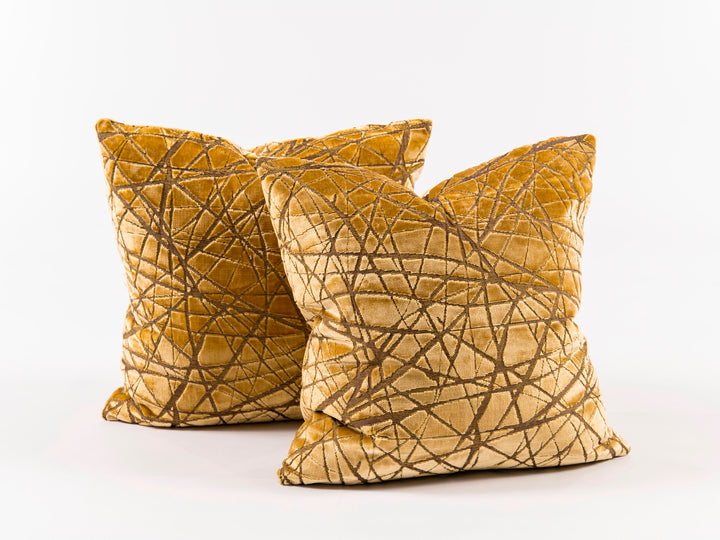 Pair Custom Cut Gold Velvet Pillows
