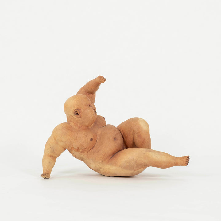 Shimazu’s art is influenced by her interest in nature, history, and family. In creating her distinctively charming stoneware pieces, she draws heavily from her experience as an Asian-American living in Hawaii. She is best known for her stoneware sculptures of bald, nude, chunky Asian women constructed with hand-building techniques. Her figures are created without complex details in order to accentuate their ceramic origins.