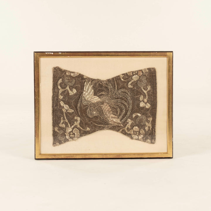 Framed Antique Chinese Silver Silk Embroidered Bird Textile