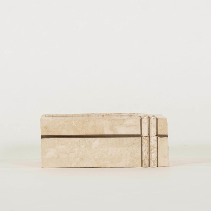 Maitland Smith Tessellated Marble Box with Brass Inlay