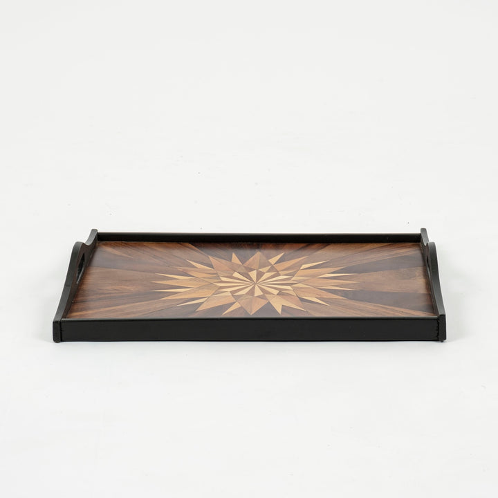Mid-Century Mixed Wood Tray with Geometric Pattern