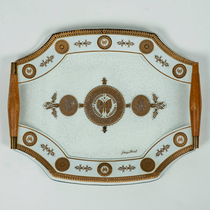 Mid-Century Georges Briard Embassy Pattern Clear Tray With Teak Handles