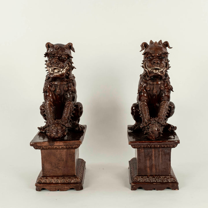 Pair 20th Century Chinese Terracotta Glazed Fu Dogs