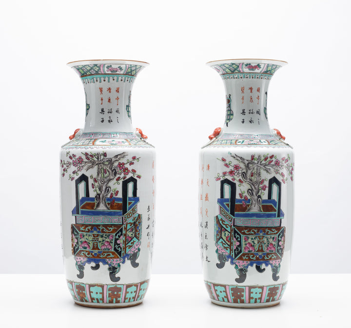 Pair of 19th Century Chinese polychrome porcelain vases in mint condition.