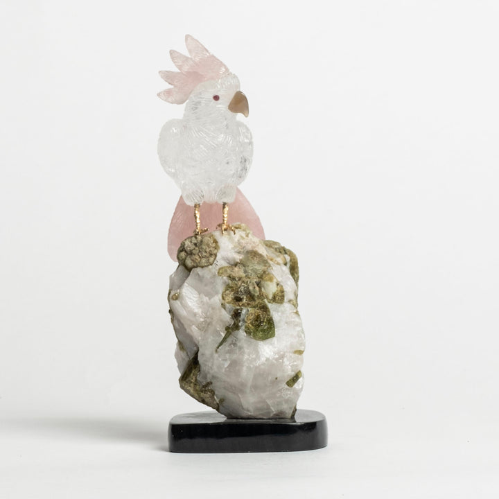 Quartz Cockatiel on White Granite and Tourmaline 2481