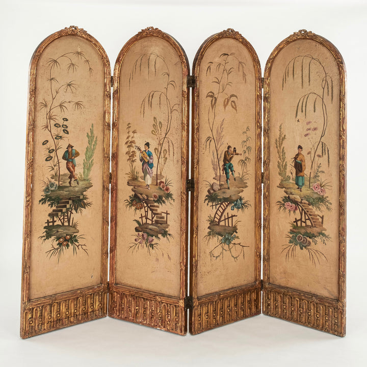 19th Century French Chinoiserie Four Panel Giltwood Screen