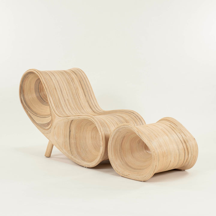 Sculptural Split Reed Lounge Chair and Ottoman in the Manner of Betty Cobonpue