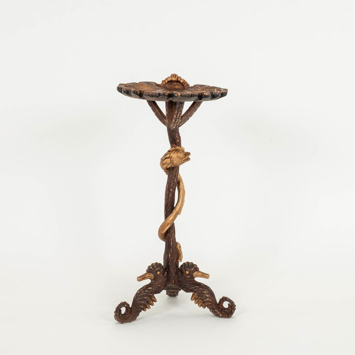 Seahorse Serpent Shell Grotto Black Gold Parcel Gilt Tall Pedestal Table