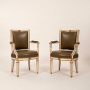 Pair 20th Century Louis XVI Style Painted Gilt Armchairs