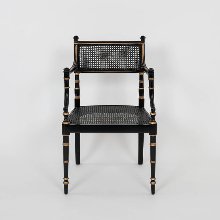 Regency Style Black Gold Cane Armchair