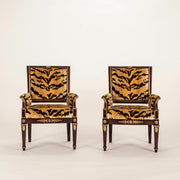 Pair 19th Century Empire Scalamandré Tiger Velvet Bergère Chairs