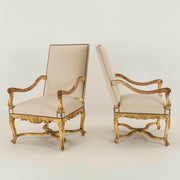 Pair 19th Century Louis XV Style Giltwood Fauteuils