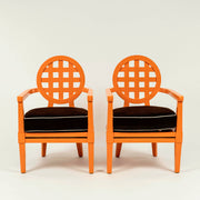Pair Orange McGuire Teak Portico Armchairs