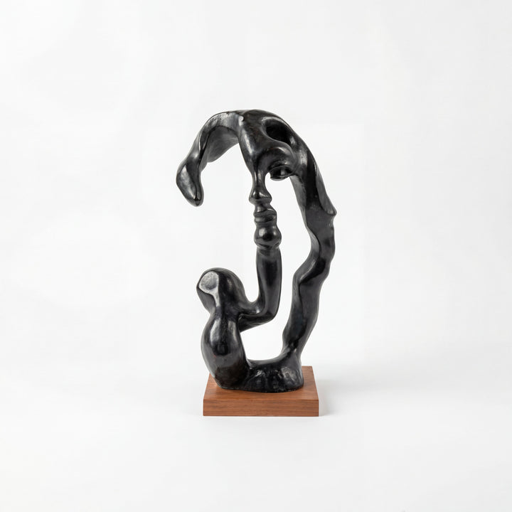 Bronze sculpture on wood base.