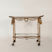 Vintage Italian Gilt Iron Rope & Tassel Bench Bar Cart