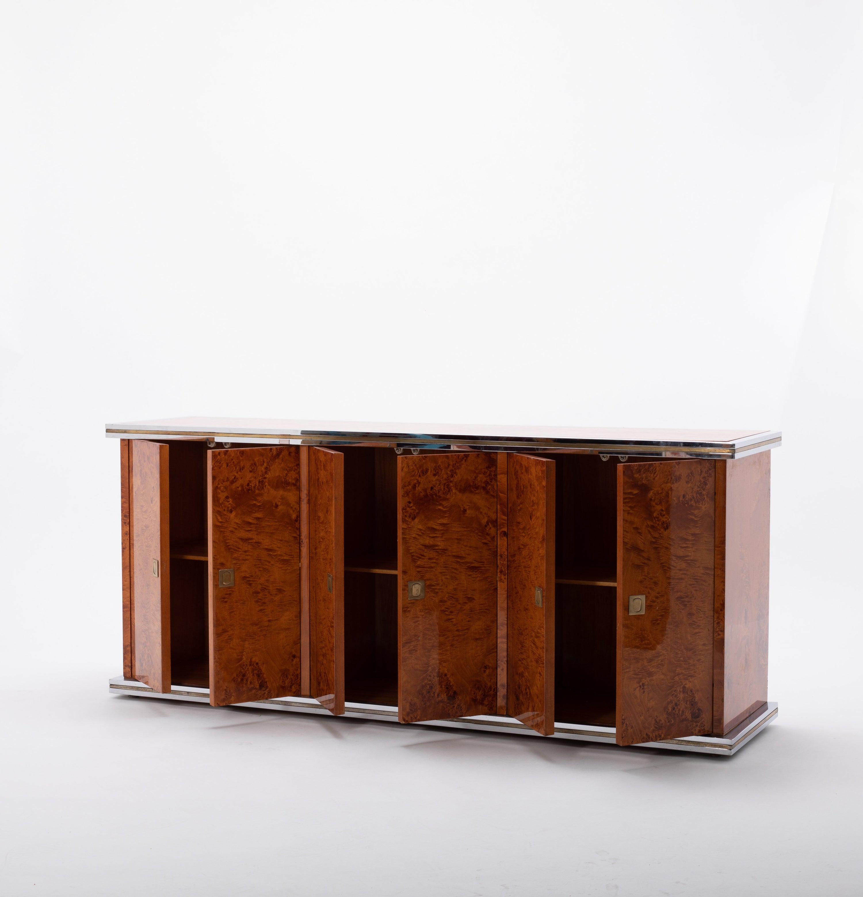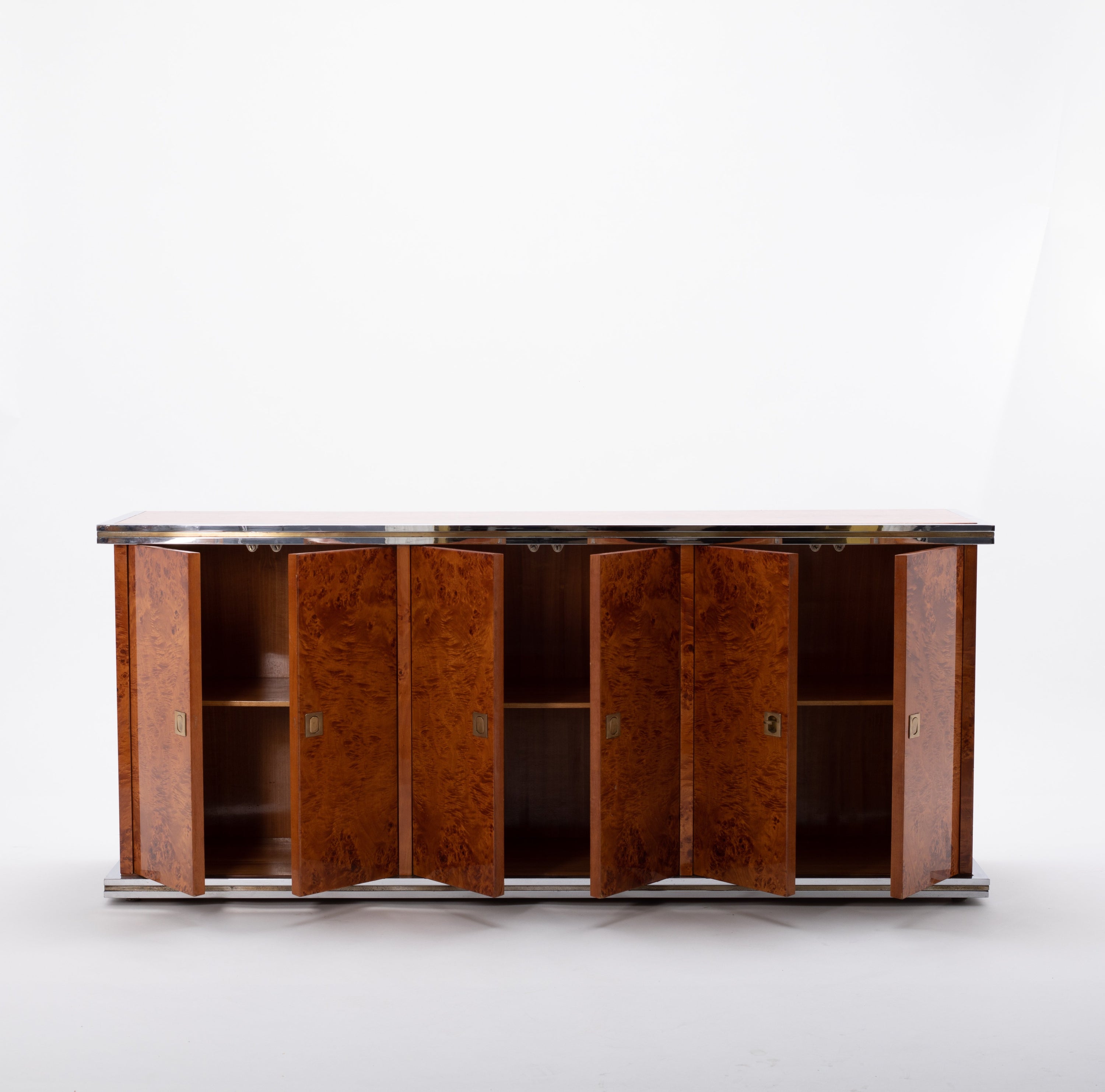 Italian burl elm credenza by Willy Rizzo, circa 1968.