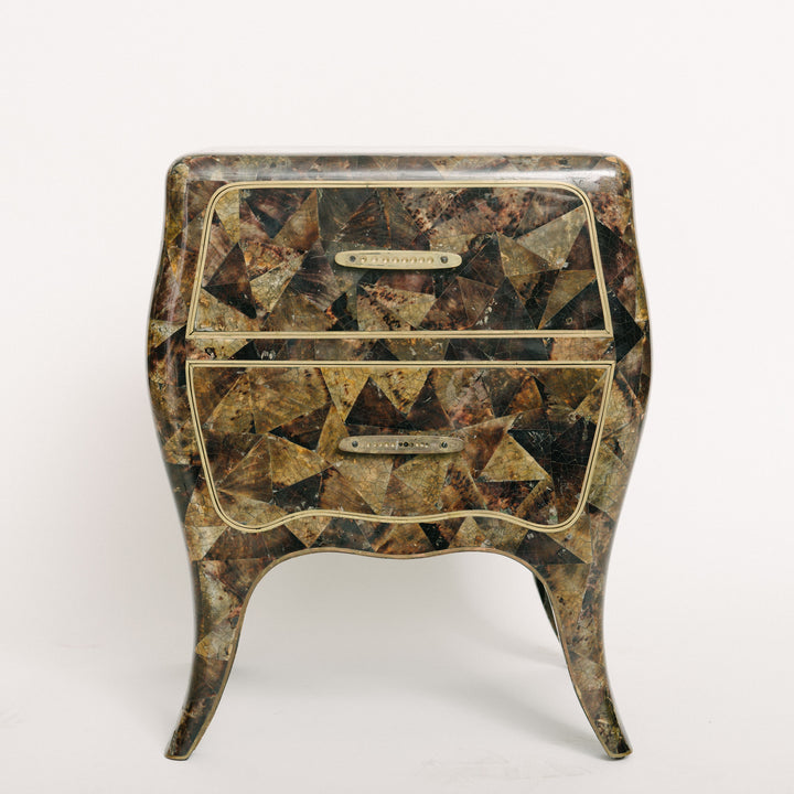 Vintage Maitland-Smith chest featuring an all-over chunky geometric horn veneer