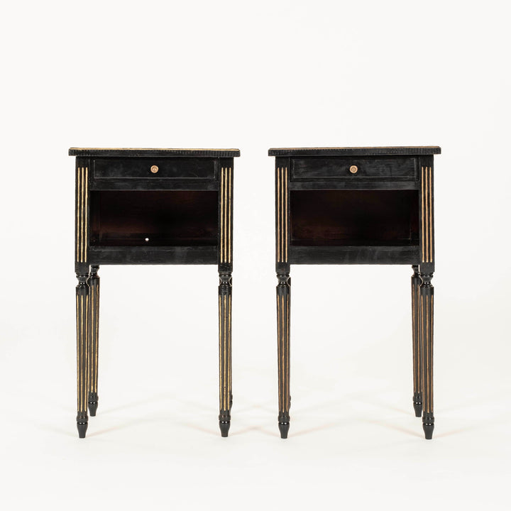 Pair Louis XVI Style Black Nightstands