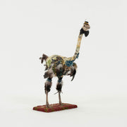 Baby ostrich taxidermy, patchwork of antique and vintage textiles.