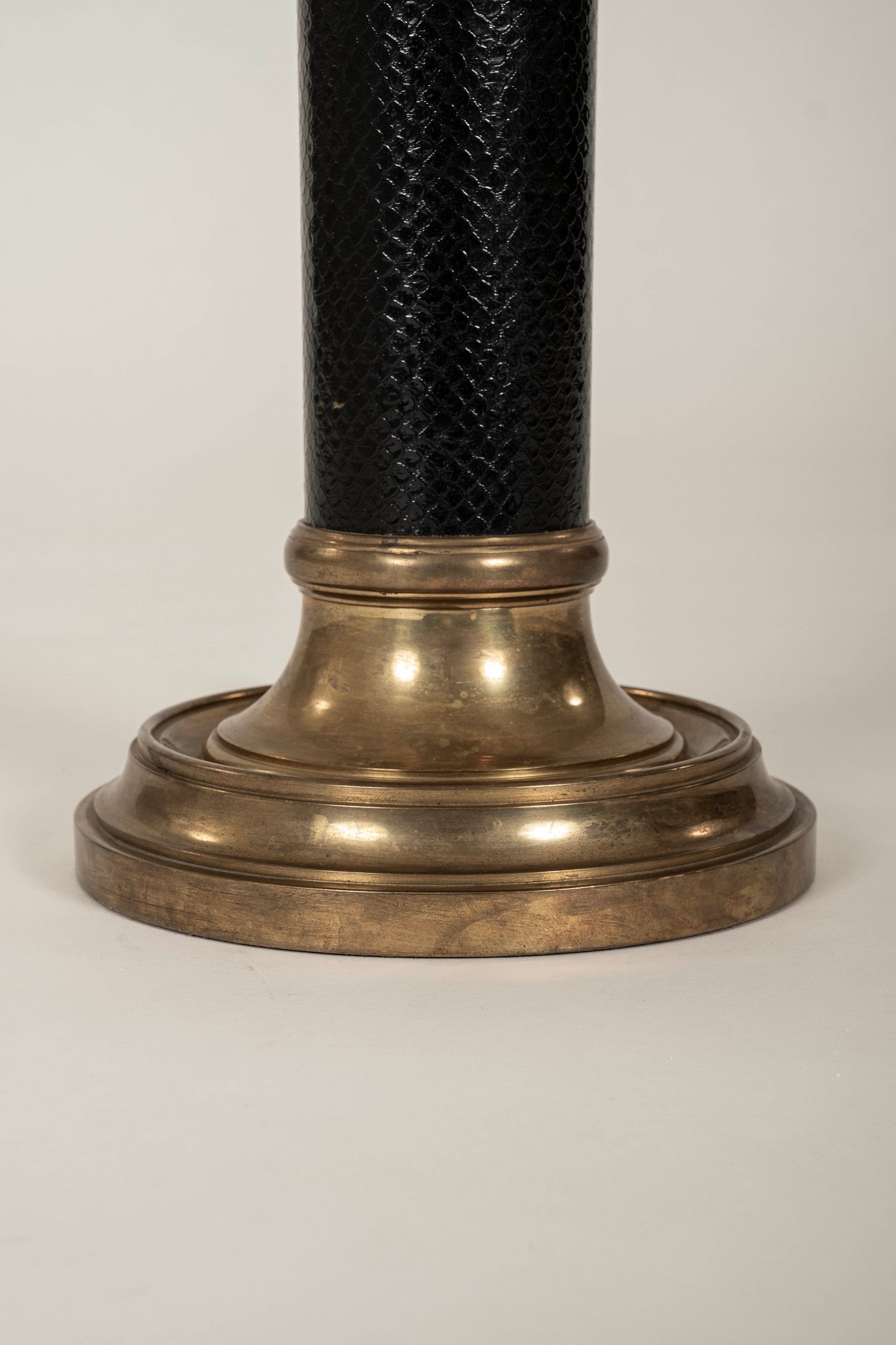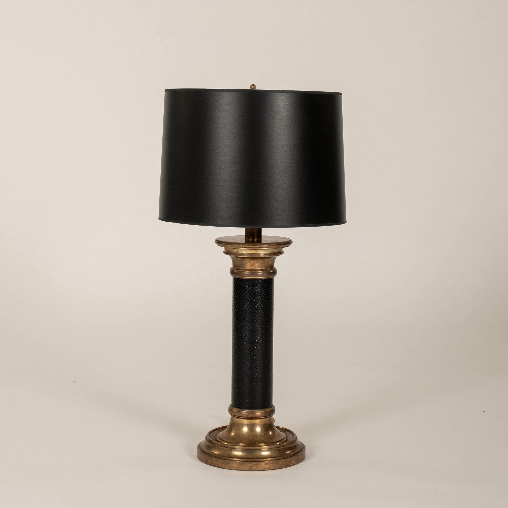 Pair Brass and Ebonized Snakeskin Column Lamps