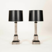 Pair Tessellated Marble Column Lamps
