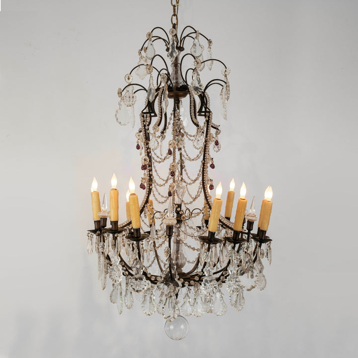 Italian 12-Light Crystal Chandelier, Circa 1920