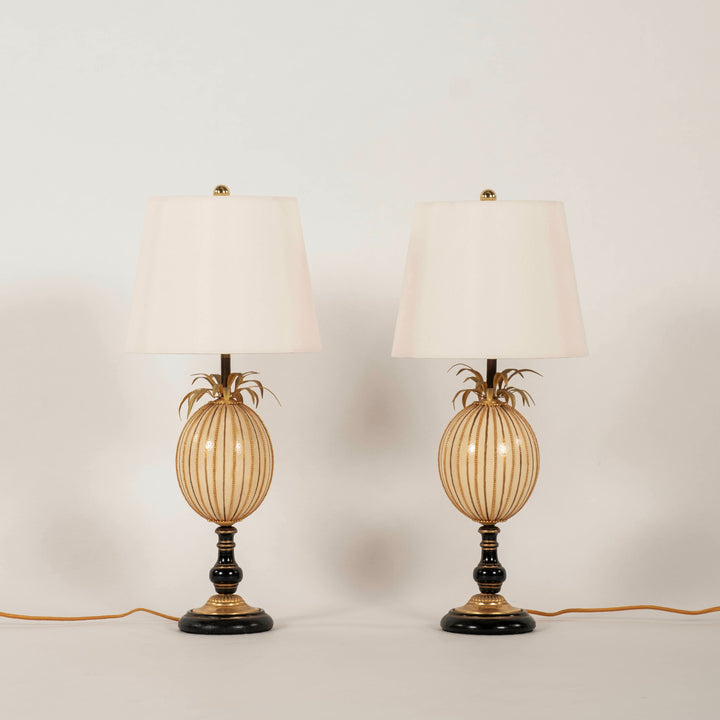 Pair French Parcel Gilt Ostrich Egg Table Lamps