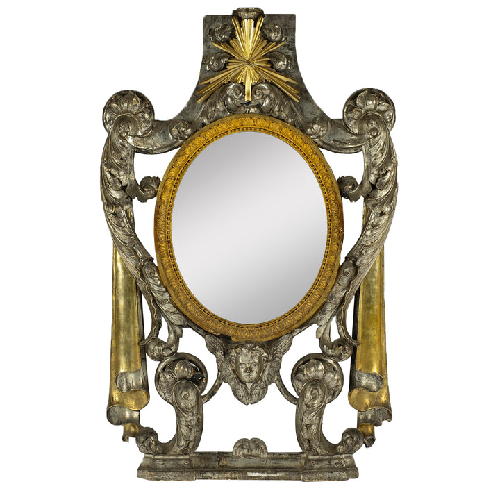 17th Century French Renaissance Silver Gold Giltwood Mirror