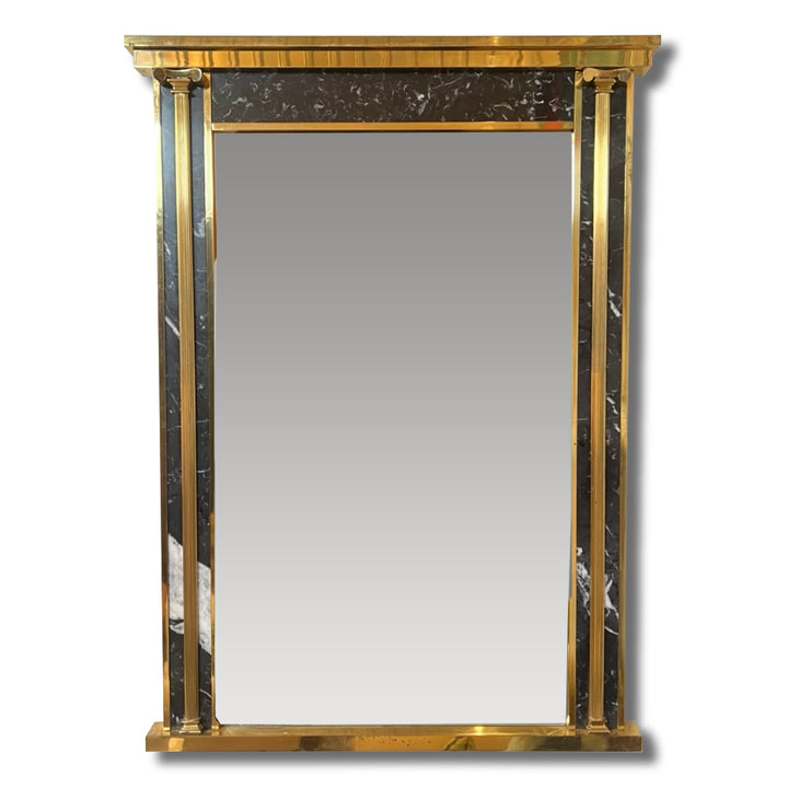 1970s Brass Black Marble Mirror