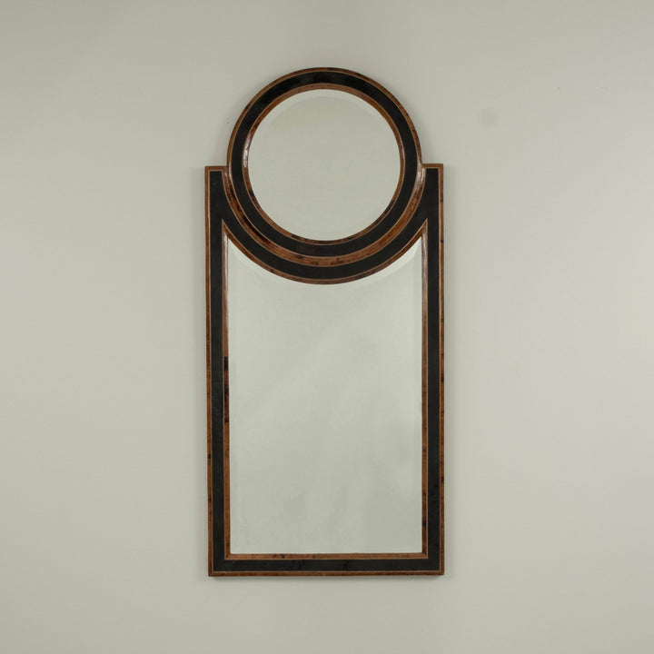 Penshell, lacquered, brass inlay, beveled mirror