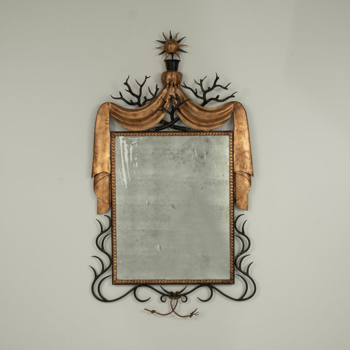 Branch Swag and Sun Gilt Iron Mirror in the manner of Gilbert Poillerat