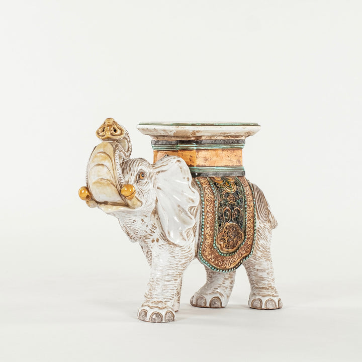 Italian Glazed Terra Cotta Elephant Garden Stool