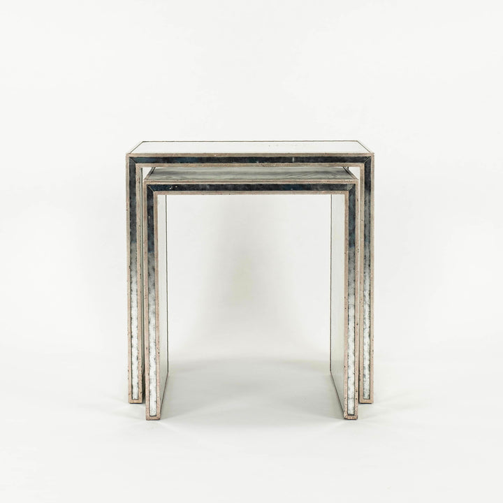 Nesting Mirrored Table Set, Silver Gilt Trim