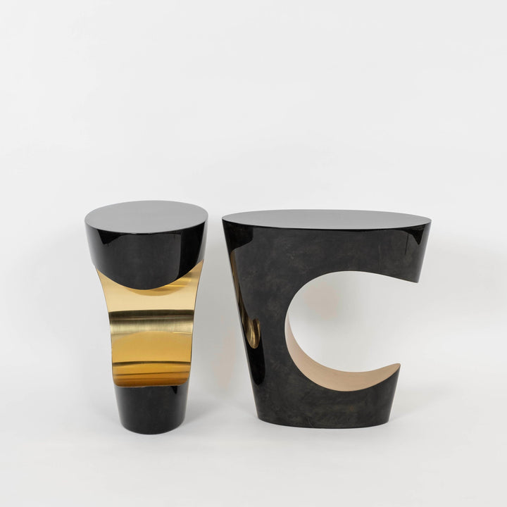 Pair Sylvan S.F. Lacquered Charcoal Black Gold Crescent Parchment Tables