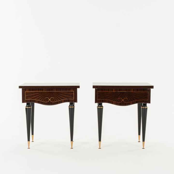 Pair French Art Deco Style Lacquered Nightstands Side Tables