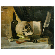 19th Century Signed Orren C. Richards Skull Still Life Oil Painting