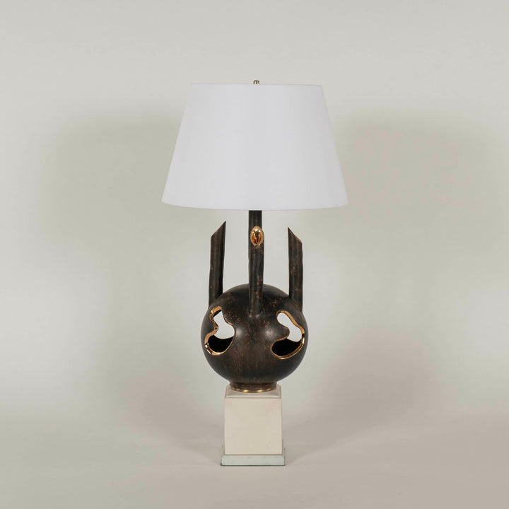 Black Gold Gilt Brutalist Pottery Table Lamp