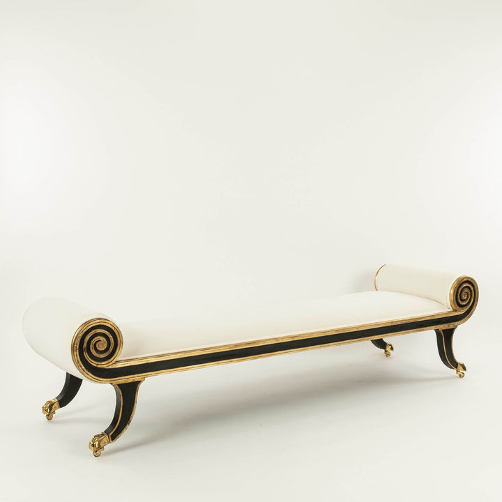 Federal style banquette upholstered in an ecru mohair. Also available C.O.M.