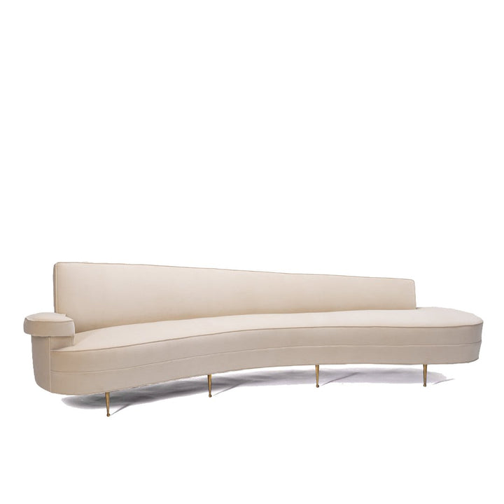 Federico Murani style Italian sofa upholstered in an ecru velvet. Left and right arm sofas available.