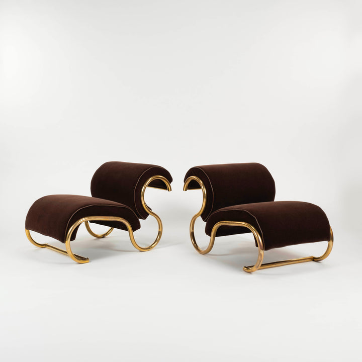 Pair 1970s Guzzini Italian Tubular Brass Lounge Chairs