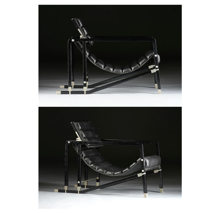 Pair Eileen Gray Ecart International Transat Black Leather Lounge Chairs